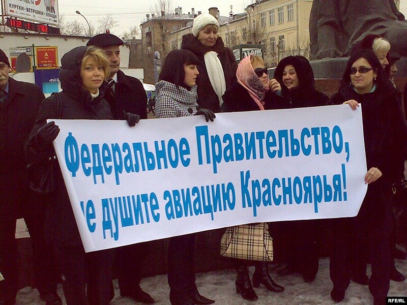 Стратегически важный регион России, Красноярский край может вскоре остаться без авиации - об этом предупреждает пикет сотрудников авиакомпании "КрасЭйр" в центре Москвы. Они не получают зарплату с сентября прошлого года.