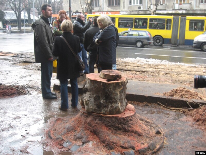 Тем временем жители Белграда создали организацию "Сохраним белградские платаны!", к которой в течение месяца присоединились около 20 тысяч человек. Ответы прохожих на бульваре Короля Александра отражали весь спектр мнений по поводу вырубки платанов: "Я не верю, что все эти деревья одновременно сгнили. Это ведь легкие нашей улицы", "Это неплохая идея вырубить платаны. Нужно их поменять, чтобы все было новым", "Есть повод подозревать, что за всем этим - чьи-то личные интересы, коррупция, и что власти снова намерены на этом заработать. Ведь им всегда не хватает денег".