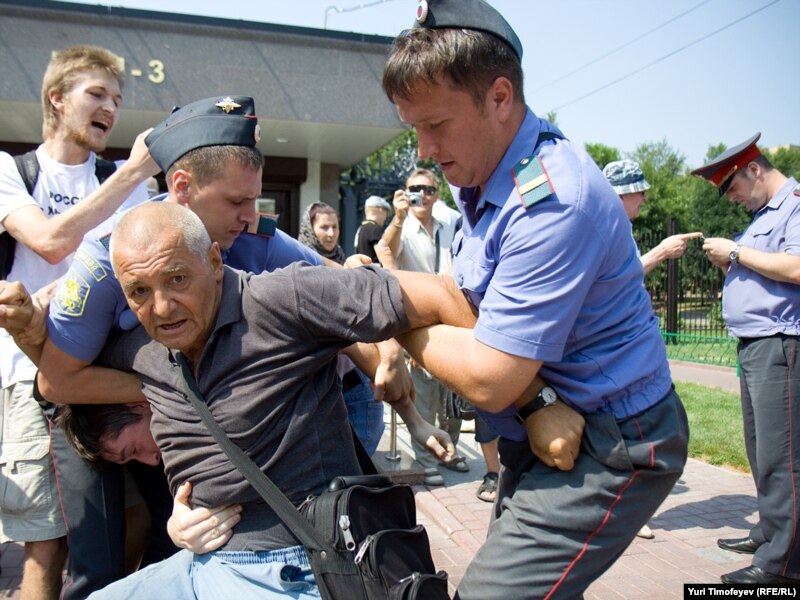 После начала сбора подписей под обращением к правительству РФ милиция объявила акцию незаконной и начала задержание участников