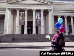 Татьяна Лазерева пытаеться попасть в Пушкинский музей на ивалидной коляске