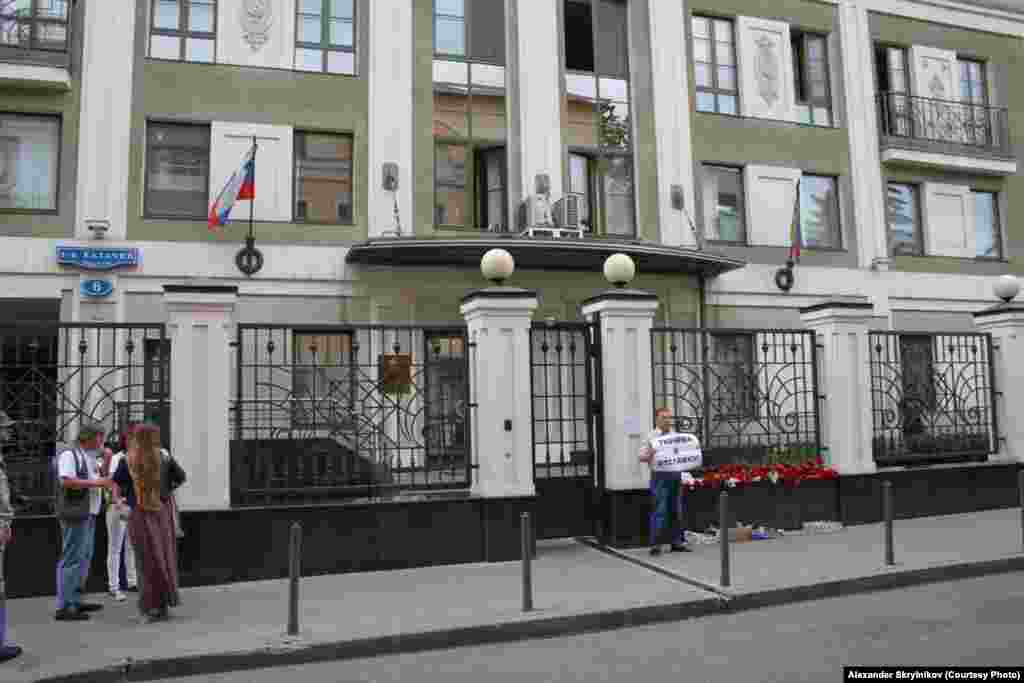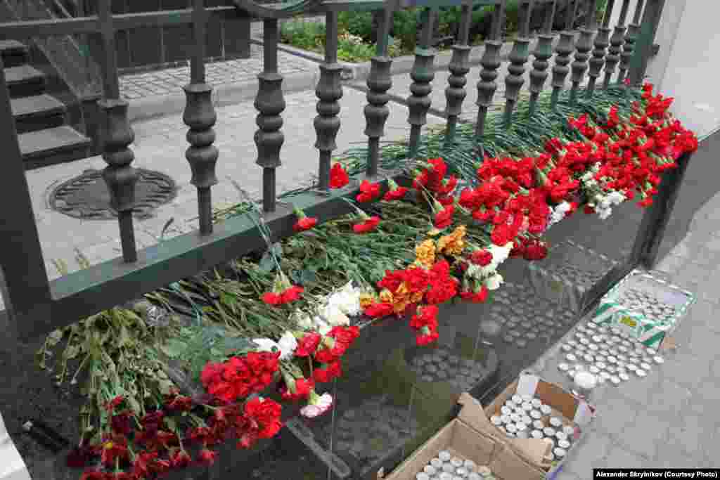 Russia--Day of mourning in front of the Krasnodar region representation in Moscow, 9Jul2012