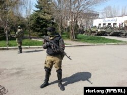Как сообщает "Остров", про-российские активисты при поддержке "зеленых человечков" (профессионально вооруженных людей без опозновательных знаков) разоружили украинских военных, а технику отогнали за пределы города. Подтверждения информации из других источников нет.