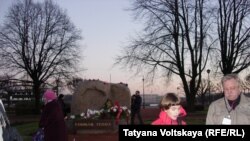 В Петербурге акция поминовения расстрелянных и погибших в ГУЛАГе прошла на Троицкой площади у Соловецкого камня.