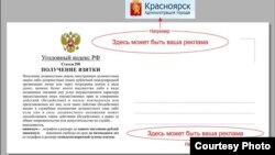 Красноярский художник Василий Слонов превратил взятку в произведение искусства – он нарисовал специальные конверты для "повышения культуры коррупции". На конвертах цитируется 290-я статья Уголовного кодекса ("Получение взяток"), конверты продаются по 100 рублей за штуку, первая партия, как сообщает художник, уже раскуплена.