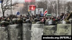 На акции оппозиции в субботу полиция задержала сотни человек, среди них более 20 журналистов. Также прошел обыск в офисе правозащитного центра "Весна", там задержали 57 человек. ​