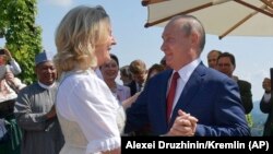 В субботу 18 августа Владимир Путин по дороге на переговоры с Ангелой Меркель заехал на свадьбу главы МИД Австрии Карин Кнайсль, опоздав на 10 минут.