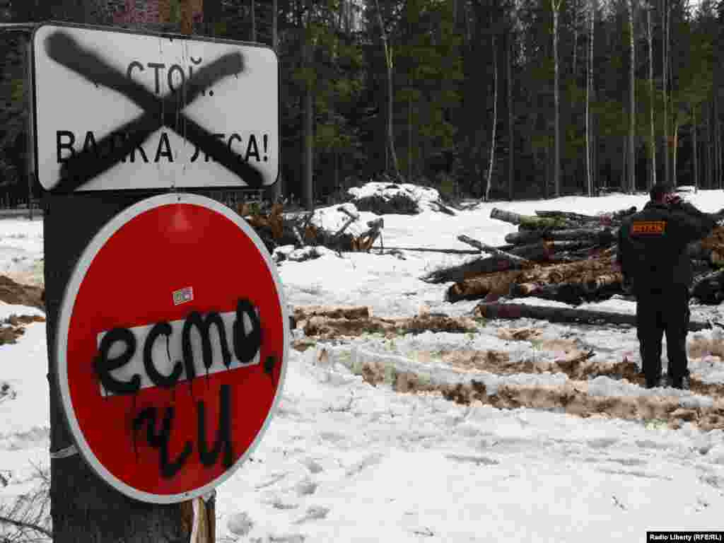 Защитники Химкинского леса протестуют против продолжения строительства трассы Москва-Санкт-Петербург