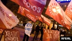 Активисты РНДС, которому министерство юстиции отказало в регистрации в качестве общественного движения, провели во вторник в Москве акцию протеста под лозунгом «Хватит кризисов за счет народа!»