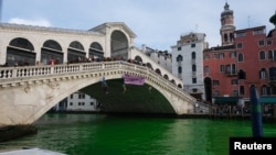 Экоактивисты окрасили воду в Венеции в зелёный цвет