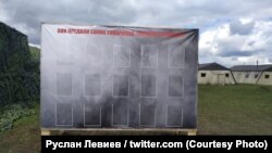 Аналитик расследовательской группы Conflict Intelligence Team Руслан Левиев опубликовал в твиттере фотографии "доски позора" и "дочки почета", установленных в одном из полевых лагерей российской армии вблизи украинской границы.