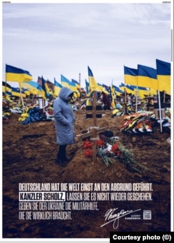 "Германия уже подводила мир к пропасти. Канцлер Шольц, не дайте этому повториться. Дайте Украине ту военную помощь, в которой она действительно нуждается", - такая надпись размещена под фотографией.