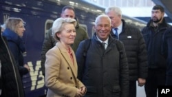 Руководители Евросоюза и ряда стран ЕС утром в понедельник - в третью годовщину российского широкомасштабного вторжения в Украину - прибыли в Киев. Глава Еврокомиссии Урсула фон дер Ляйен, председатель Евросовета Антониу Кошта, лидеры Финляндии, Дании, Канады, Норвегии, Швеции, Литвы, Латвии и ряда других стран приехали в столицу Украины на поезде. Их приветствовал президент Украины Владимир Зеленский.