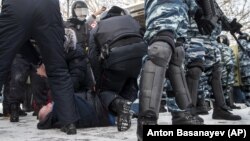 • После ареста политика Алексея Навального по всей России прошла серия протестов, массовые акции состоялись 23 января, 31 января и 2 февраля. Полицейские применяли грубую силу, было задержано более 10 тысяч человек.